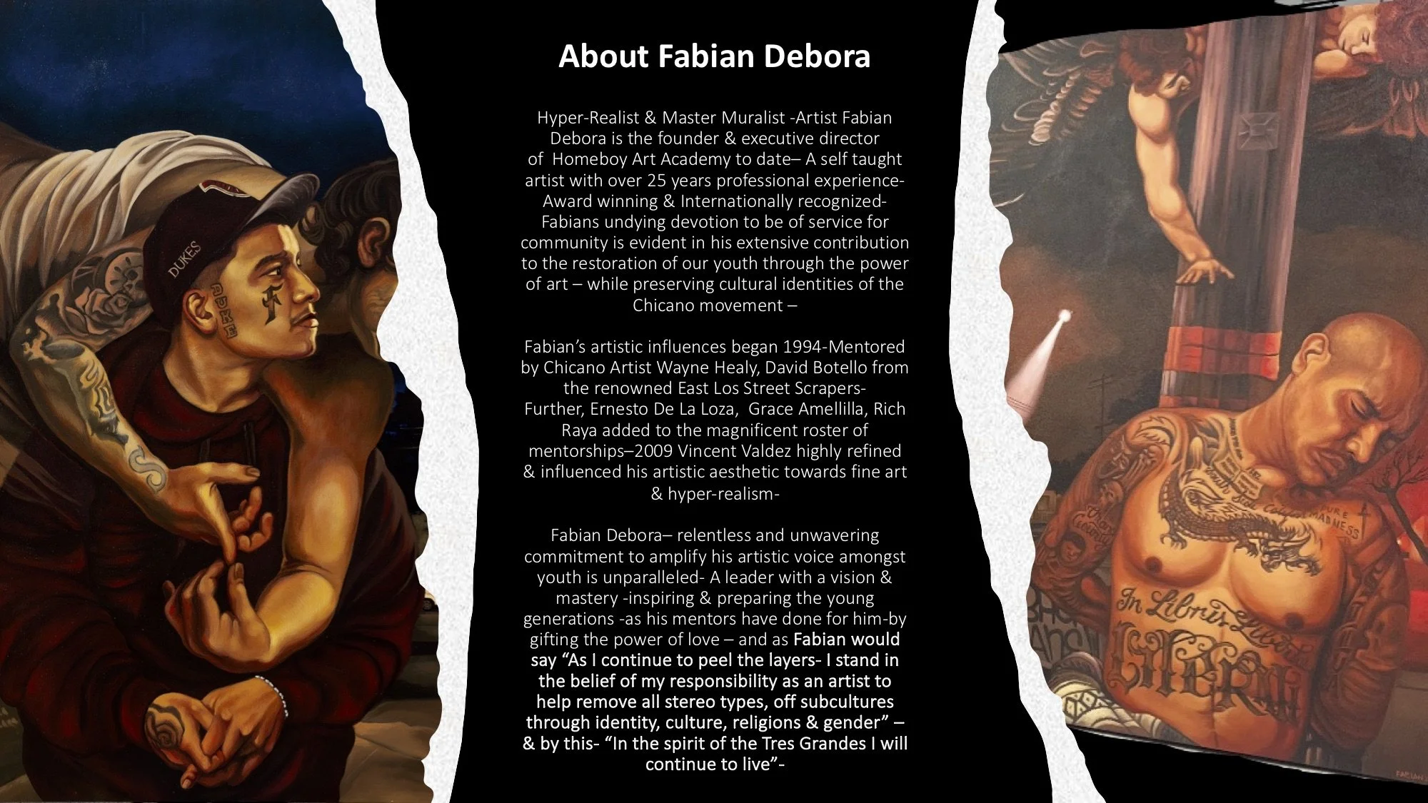 – Through “Cara de Vago” Artist Fabian Debora - audaciously has formed a kinship to 17th century artist Caravaggio's life trajectory - Fabian Debora invites you to take a seat at his table as he brings the spiritualists & religious common threads that weave our relationship to one another for a conversation as brothers & sisters navigating this journey of life & self exploration.